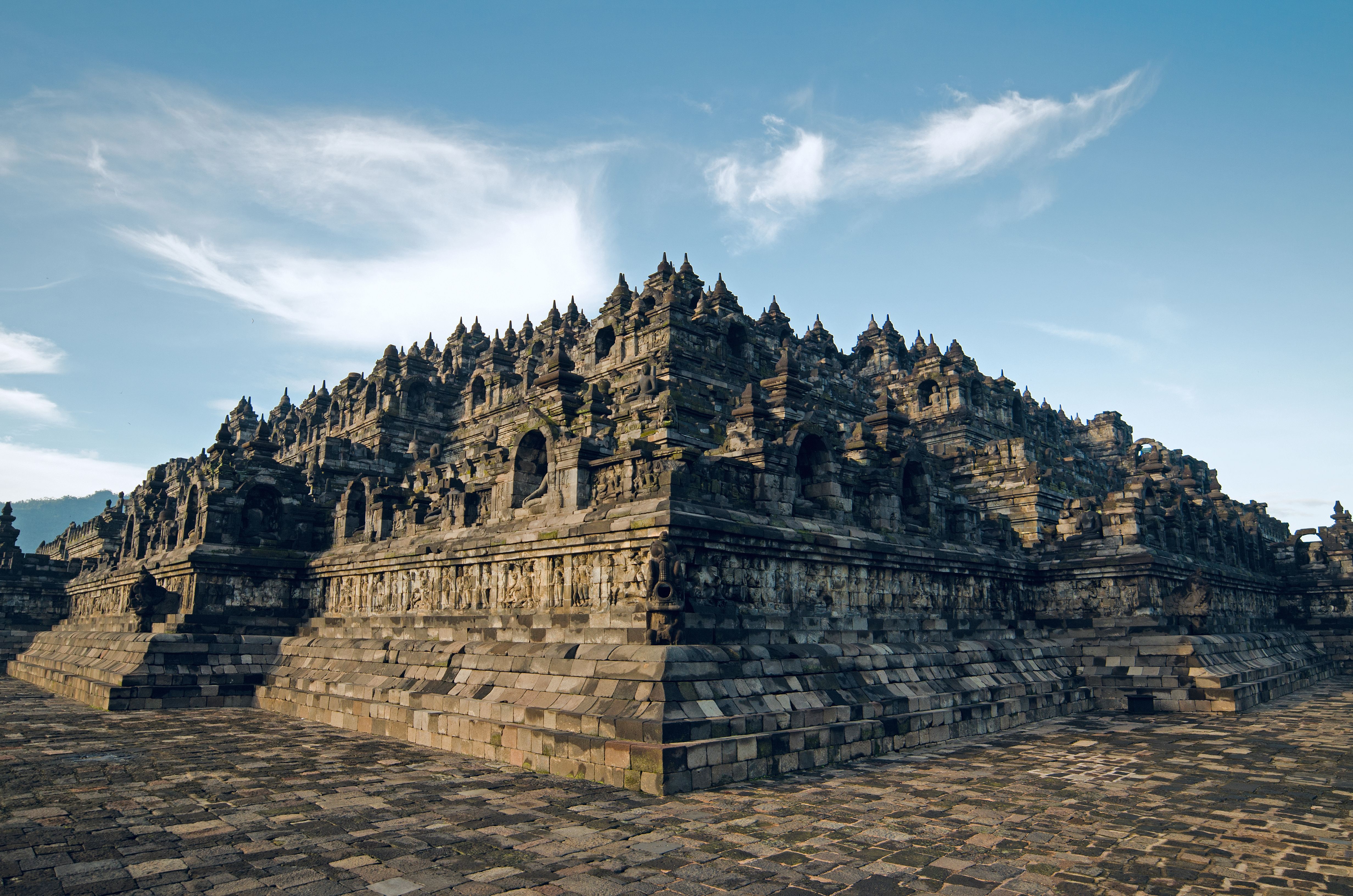 Borobudur Temple! This is the oldest Buddhist temple in Indonesia, and it was once buried under the ground a looong time ago. This temple is really huge. It has some floors, and the entire wall is full of carved reliefs telling various stories. You can use the stairs to get to the top of the temple, but it's quite high ... around 100-150 steps of stairs. Not bad, but tiring! Now, feel free to comment with