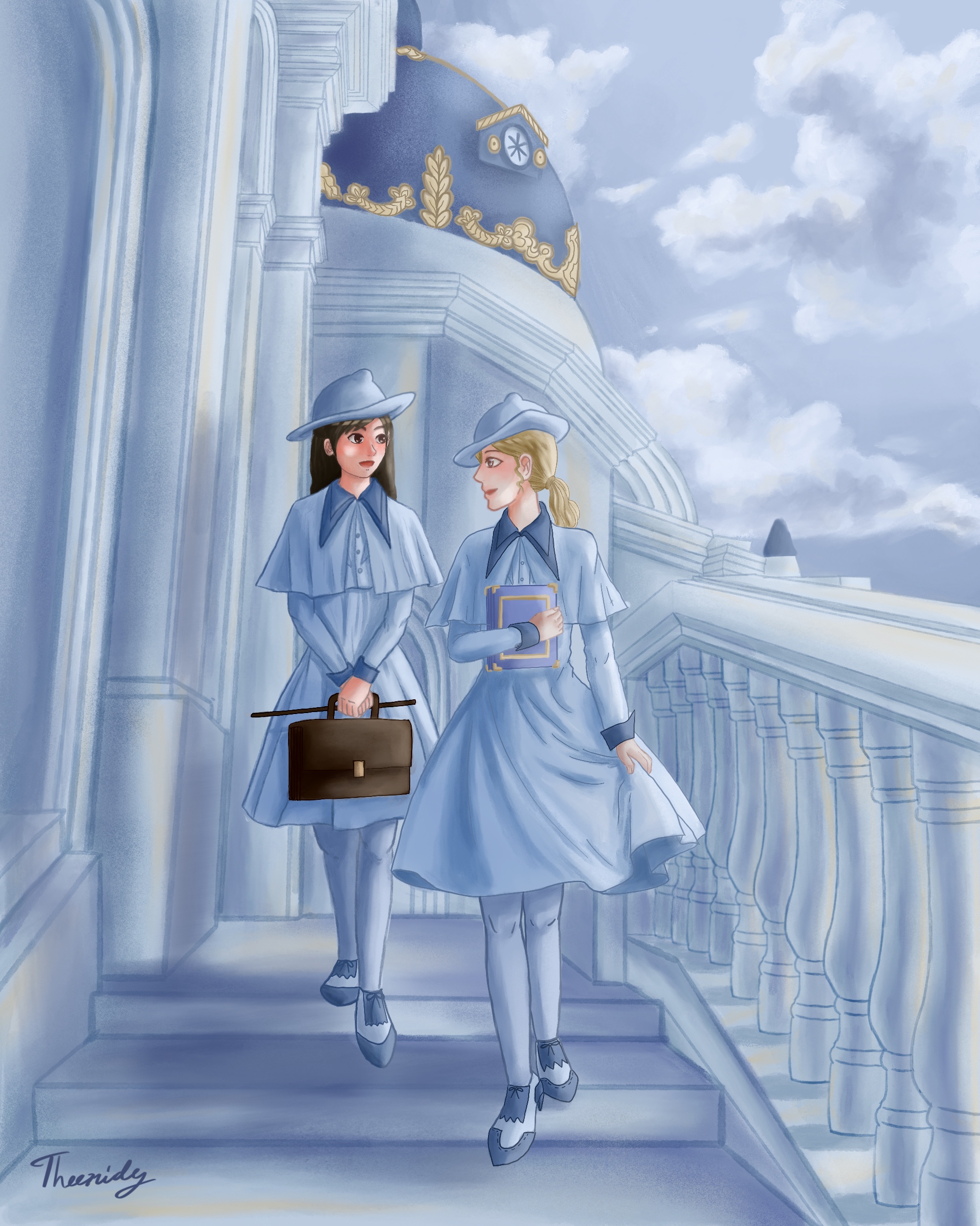 The school’s coat of arms was two golden wands crossed over each other with each of them shooting out three golden stars. The uniform they had was spell-bounding with its pale blue robes made of fine silk that always seemed to glimmer with the sheen on them.