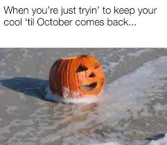 Our sixth and final Meme appears, featuring a jack-o'-lattern at the beach.